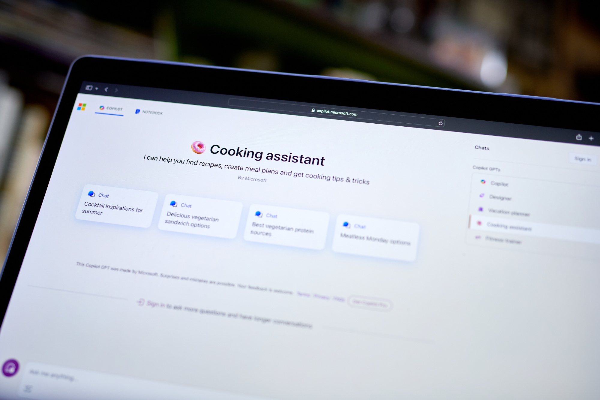 在美国纽约的Copilot网站上安排的烹饪助手