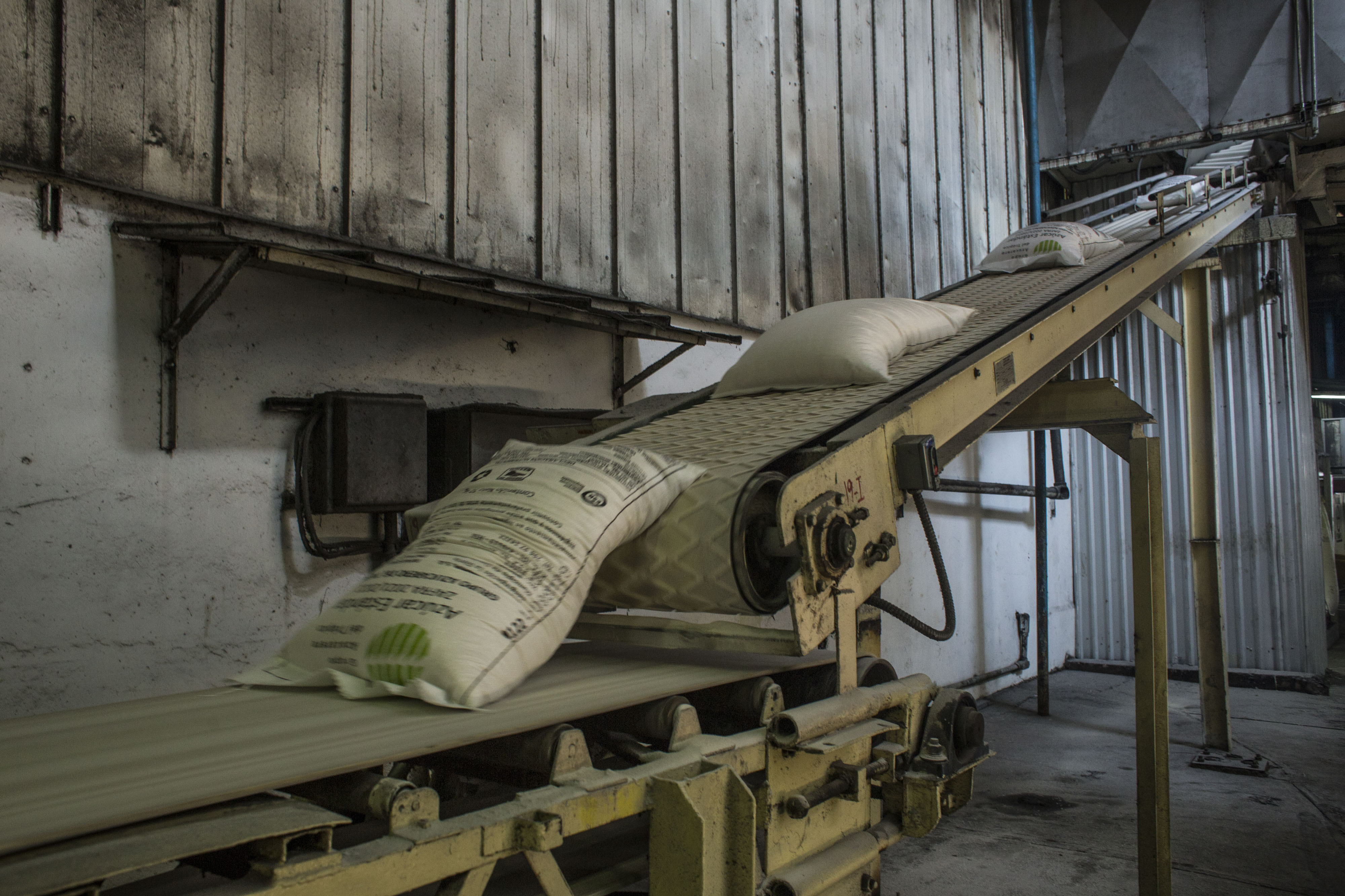 标准糖的包装在墨西哥韦拉克鲁斯州乌若洛加尔万的甘蔗厂沿着传送带移动。