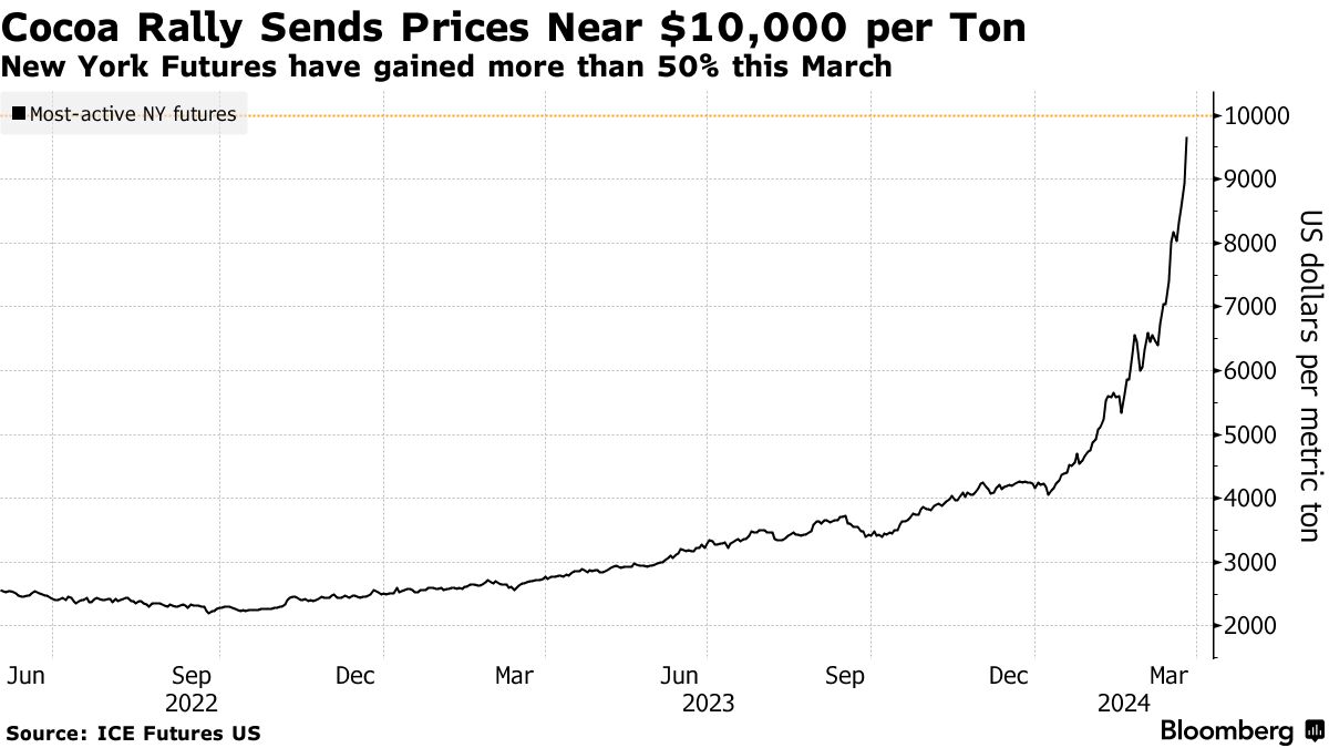 价格已经上涨至接近10000美元,这一水平在几个月前还是不可想象的,甚至使可可的价格比基准工业金属铜还要昂贵。