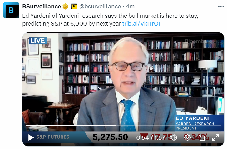 听到华尔街最著名的多头之一发出警告,而不是那些日益减少的空头人群,确实令人印象深刻。Yardeni本人指出,他对标普500指数持乐观态度,而该指数似乎正在违背重力。