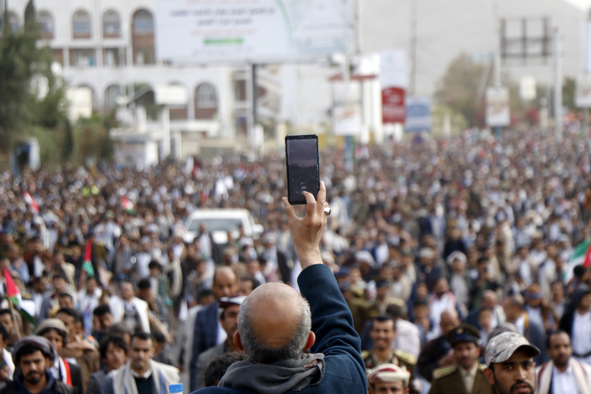 一名男子在也门首都萨那拍摄了胡塞支持者,他们正在抗议以色列-哈马斯在加沙的战争以及美国领导的对也门的袭击。摄影师:Mohammed Hamoud/Getty Images与此同时,在也门,Starlink套件在社交媒体上公开出售,这些套件是在新加坡或马来西亚等国家购买的,然后在漫游状态下激活。客户通过其他国家的银行转账或在到达港口时支付。一位要求不透露姓名以确保安全的卖家表示,在胡塞控制的地区,价格更高。这是因为电信业由胡塞控制,他们从收入中获利,并警告那些被抓到使用Starlink的人会受到“严厉的行动”。
