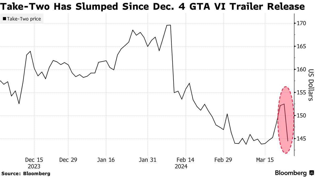 Take-Two (TTWO)的股价下跌,因为Kotaku的报道引发了关于GTA 6游戏延迟的担忧 - 彭博社