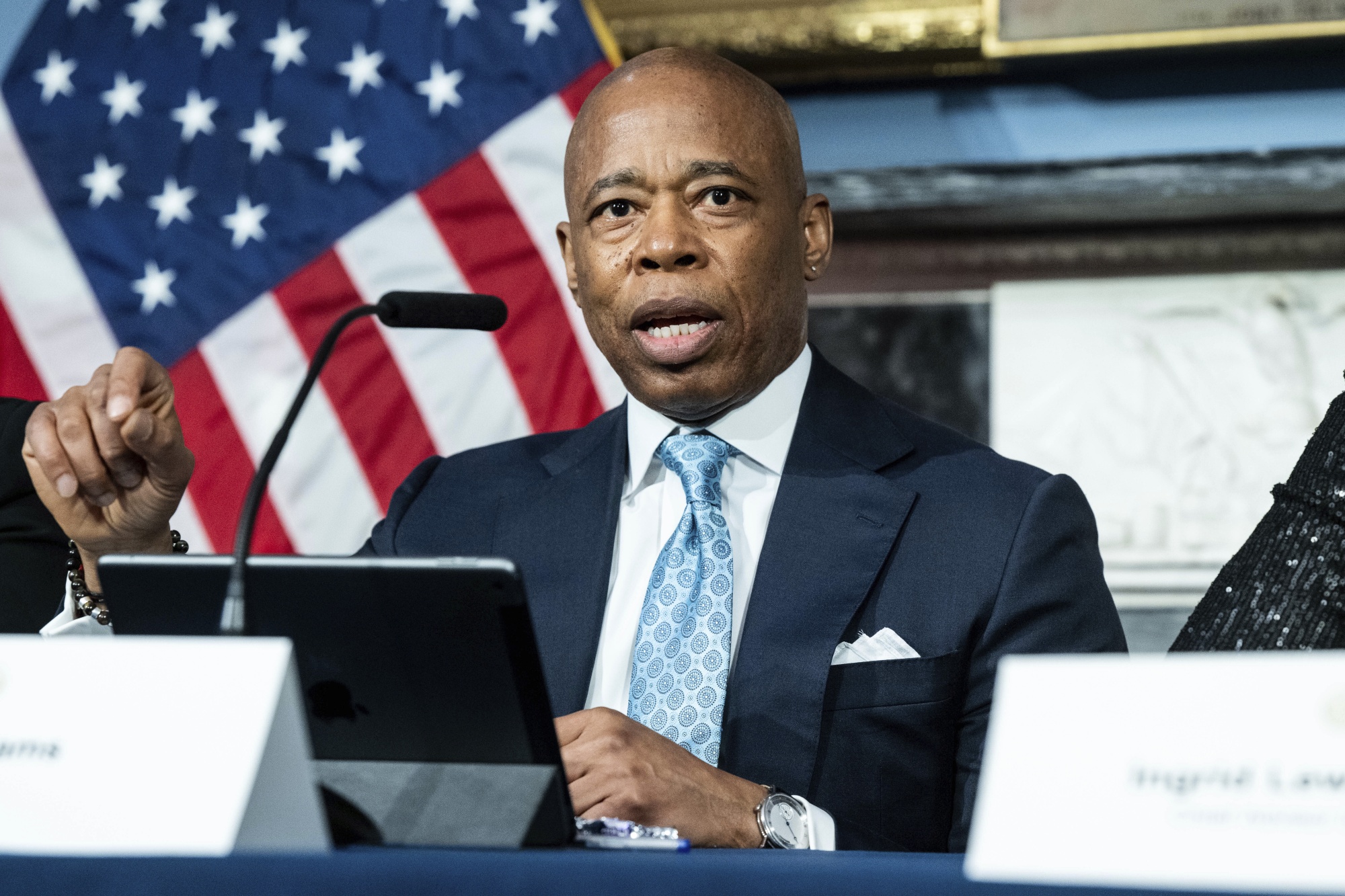 摄影师:迈克尔·布罗斯坦/西帕通讯社/AP纽约市市长埃里克·亚当斯指出,两名男子,包括一名警察,分别在一小时内被有前科的嫌犯杀害后,出现了“严重的累犯现象”。