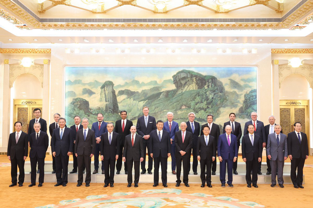 习近平主席在北京会见了一群美国商界领袖,包括黑石集团的斯蒂芬·施瓦茨曼和高通公司的克里斯蒂亚诺·阿蒙,因为中国正寻求恢复经济信心,并保持与美国的关系稳定。