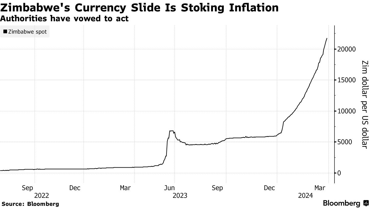 ZWL/USD津巴布韦通胀率创七个月新高,财政部长承诺采取行动 - 彭博社