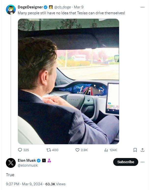 在这方面,人们应该像特斯拉说的那样去做,而不是像特斯拉的首席执行官所做的那样。马斯克毫不犹豫地展示了无人驾驶功能,双手离开方向盘,并且在X上错误地描述了它的功能。
