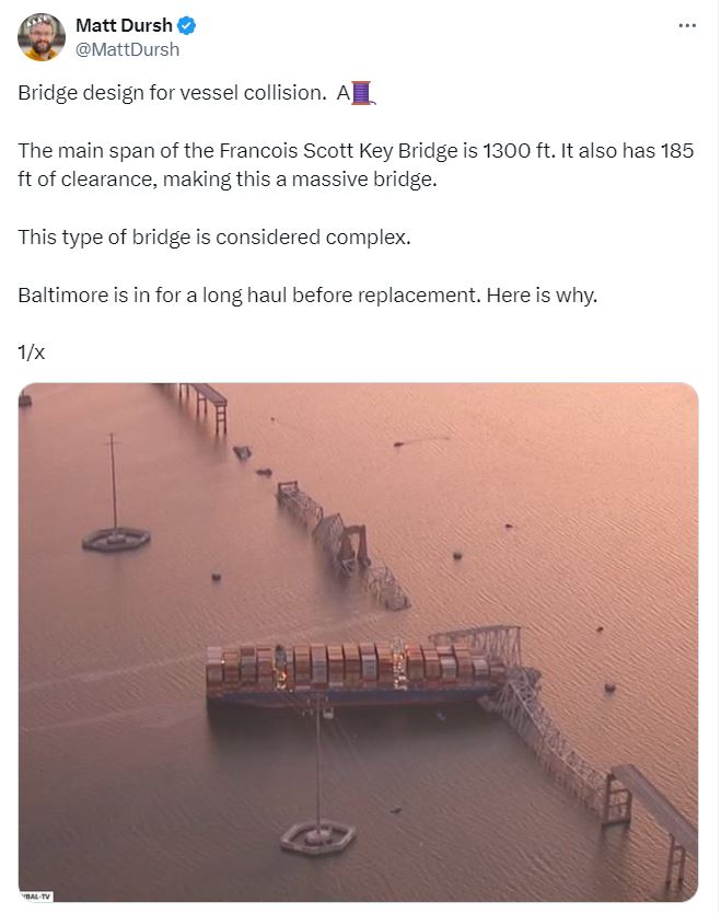这次桥梁坍塌也可能说明的是近几十年来对美国关键基础设施的投资可能不足。工程师们指出,人们将会关注周二凌晨货船撞击的桥墩周围的防护结构。这座桥于1977年建成,人们将会质疑它是否能够承受几十年来不断增长的贸易和运输量的压力。