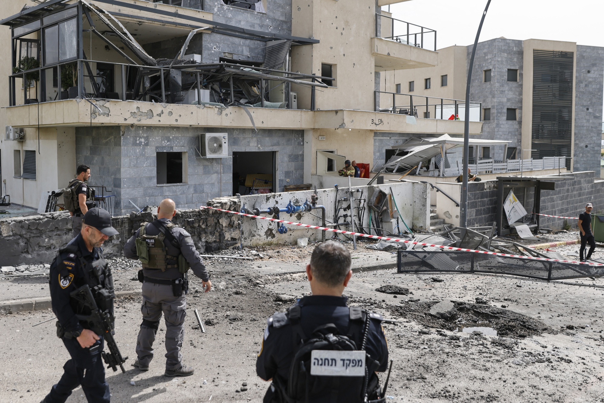 以色列军队检查了一栋被真主党火箭击中的建筑物,位于以色列基里亚特沙莫纳,时间是3月27日。
