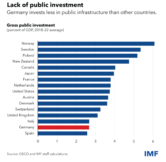 相反,总部位于华盛顿的基金工作人员观察到,德国真正面临的问题是人口老龄化、投资不足和过多的官僚作风。