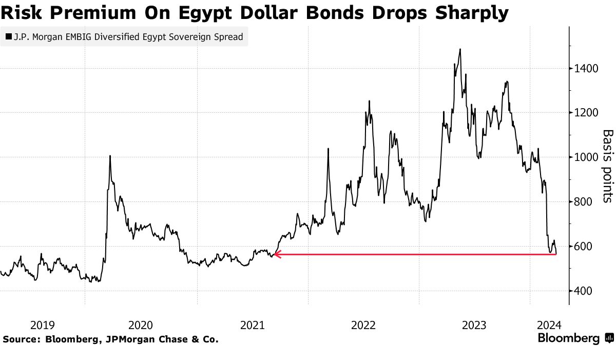 与此同时,根据摩根大通银行的指示数据显示,周三,投资者要求持有埃及美元债券而不是美国国债的额外收益率低于600个基点,从广泛被投资者认为是资产处于困境的1,000个基点水平下降。