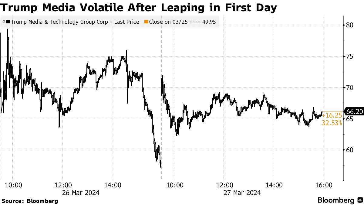 特朗普媒体股票(DJT)在纳斯达克交易首日大涨 - 彭博报道