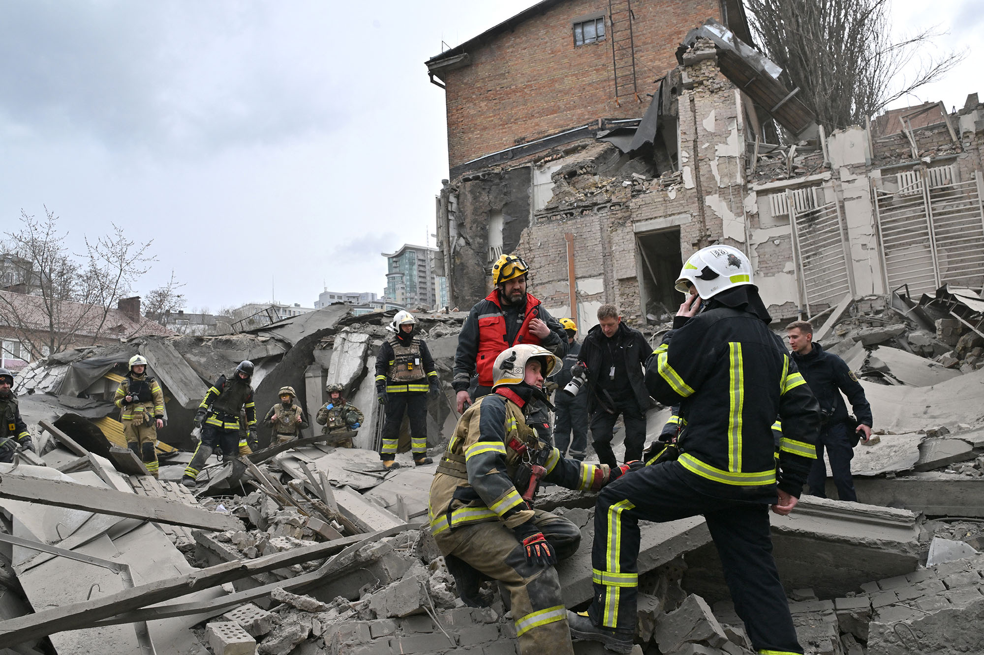乌克兰救援人员在3月25日导弹袭击现场工作。