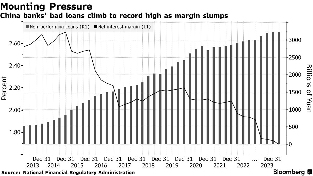投资者正在关注大型银行的盈利能力和资产质量,以评估它们在一个严重依赖银行信贷来恢复势头的经济中的抗压能力。根据官方数据,中国商业银行的综合利润去年增长了3.2%,达到2.38万亿元,这是自2020年以来最慢的增速。不良贷款余额攀升至创纪录的3.23万亿元。