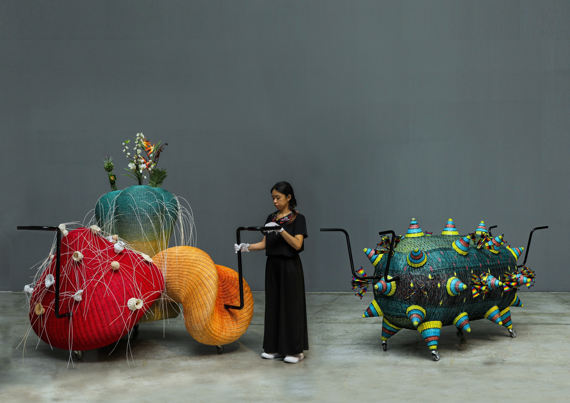 Haegue Yang的Underbelly Alienage Duo。这些是外星人,我们认为。来源:香港巴塞尔艺术展另一个值得关注的人是Marilyn Minter,根据Lehmann Maupin画廊香港总监Shasha Tittman的说法,她可能会是今年一些最受关注作品的幕后推手。