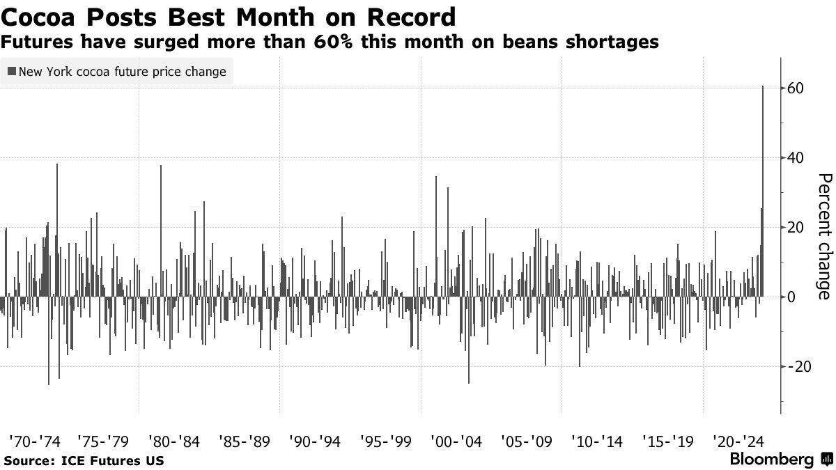 可可集团创下历史最佳月份,因豆子短缺推动价格上涨-彭博社