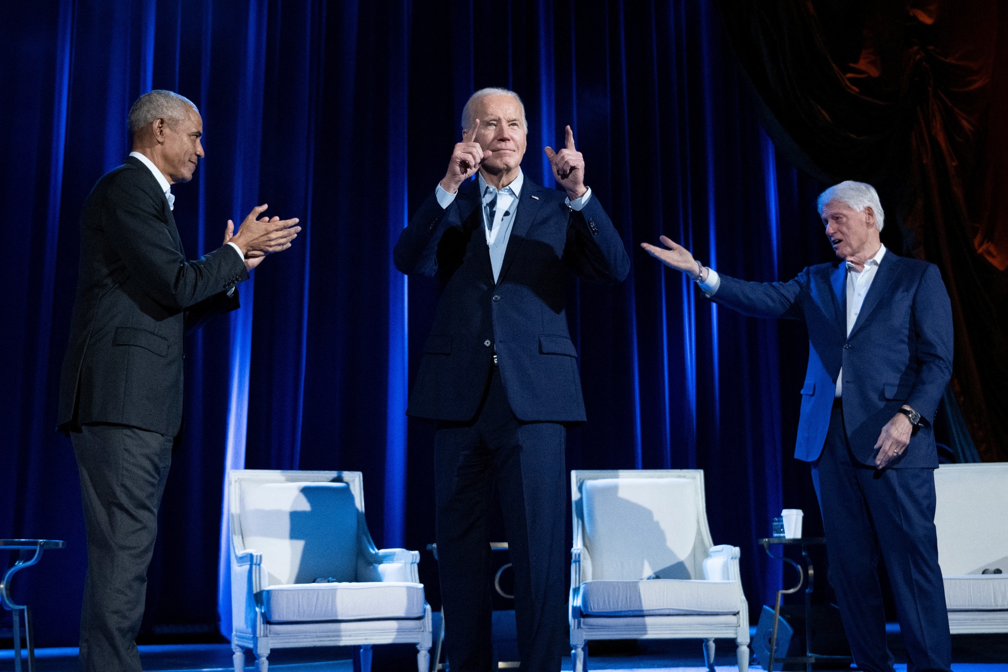 巴拉克·奥巴马、乔·拜登和比尔·克林顿在纽约的收音机城音乐厅,摄于3月28日摄影师:布兰登·斯米亚洛夫斯基/法新社/盖蒂图片社总统乔·拜登表示,包括沙特阿拉伯在内的阿拉伯国家准备在未来的协议中“完全承认以色列”,他和他的民主党前任比尔·克林顿和巴拉克·奥巴马在周四的一次竞选活动上回应了对他中东政策的批评。
