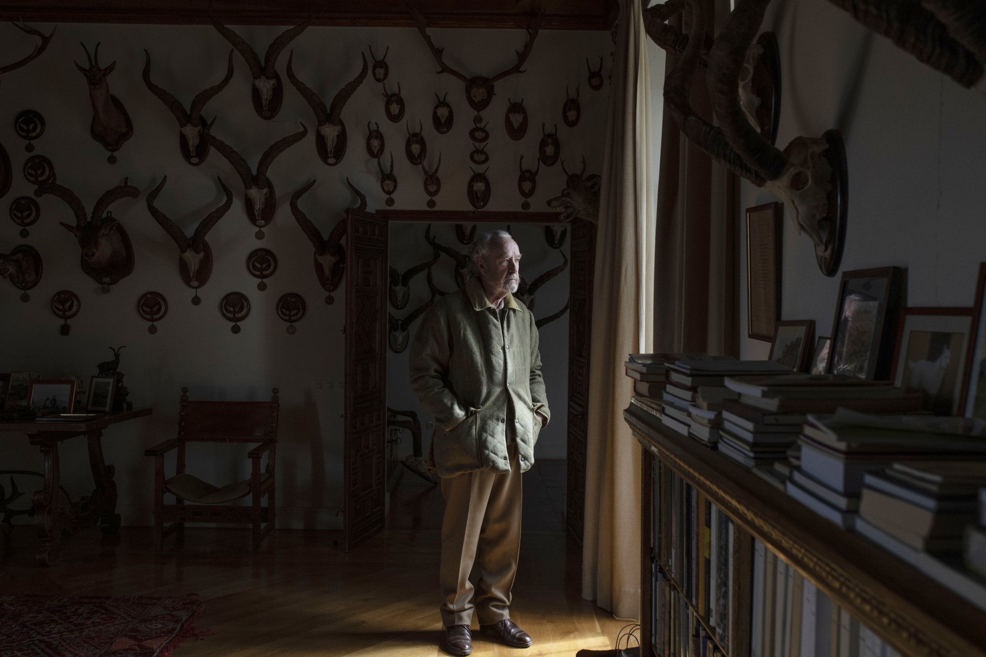 阿隆索·阿尔瓦雷斯·德·托莱多·伊·乌尔基霍打开他位于270公顷(670英亩)的乡间宫殿的白色木门,以一种享受礼仪的仪态示意。现年84岁的瓦尔杜埃萨侯爵,曾经骑马领导他独特的阿维莱纳黑牛的季节性迁徙,他急于展示他家族漫长的农业和狩猎传统的纪念品。他巨大客厅的石墙上挂满了数百个狩猎战利品:三只猞猁、两只狼和一只鹿腿的剥制标本。所有这些都是他的祖父在政府鼓励的时候猎杀的。他自豪地指着他祖先的油画,这是一个西班牙贵族王朝,可以追溯到五个多世纪以前。