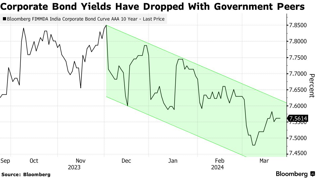 公司债券也受益于资金流入政府债券,因为前者主要是以主权债券定价的。自指数公告以来,顶级10年期债券的收益率已下降约30个基点。