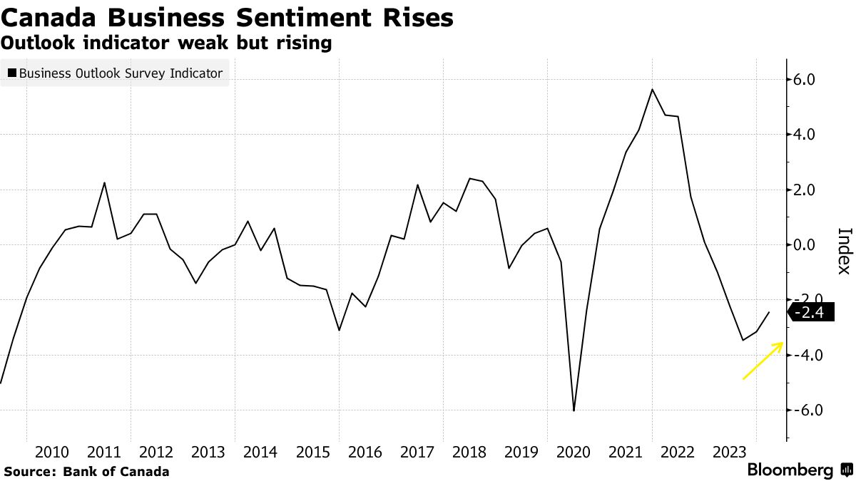 加拿大银行的调查显示,商业乐观情绪疲弱但正在改善,更少的公司预期会出现衰退,尽管对不确定性的担忧日益增加。