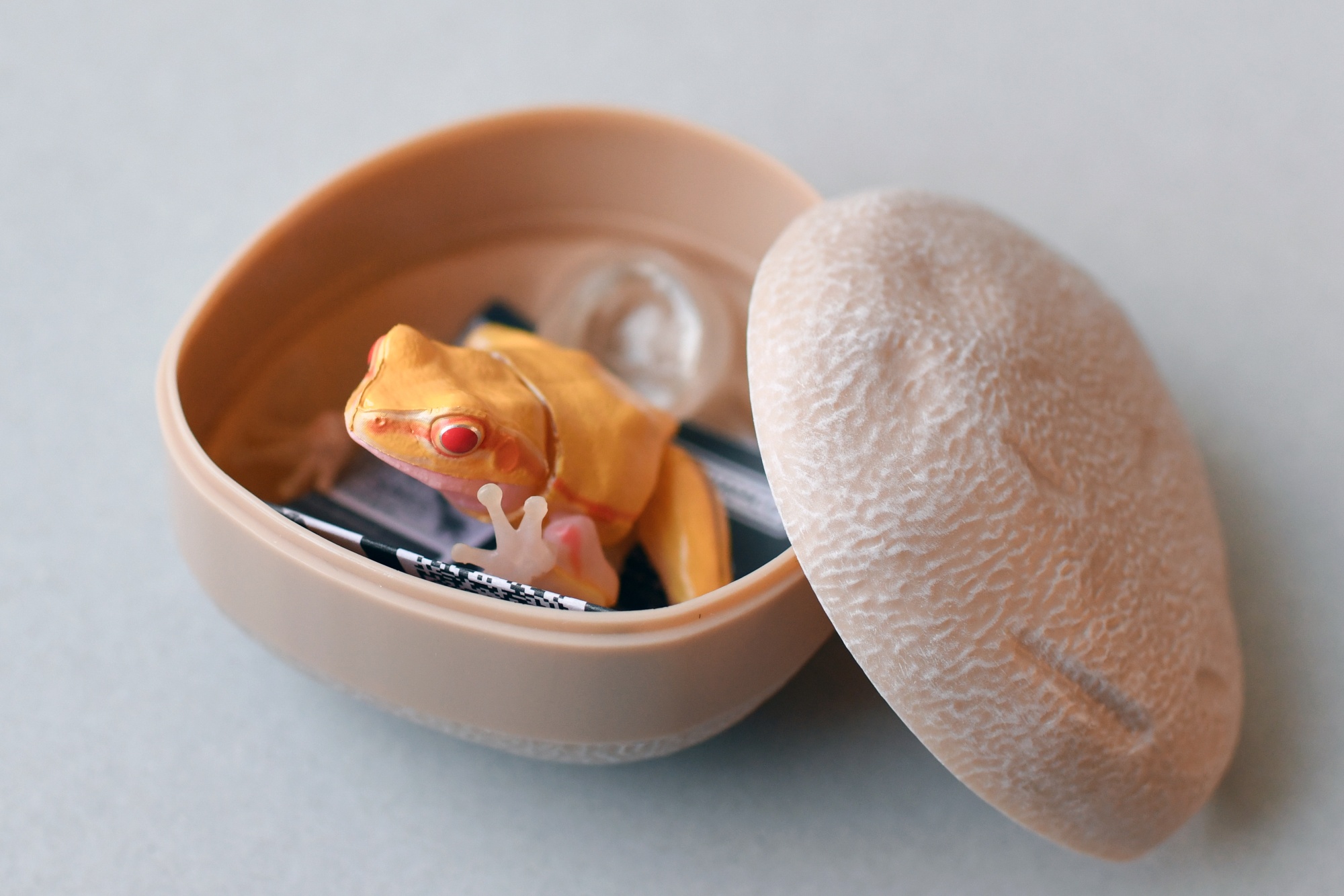 “生命百科全书”系列中的一只树蛙玩具,是高级胶囊中的一款。摄影师:Noriko Hayashi/Bloomberg川崎岩井宇宙表示,万代还将在海外面临一些新挑战。