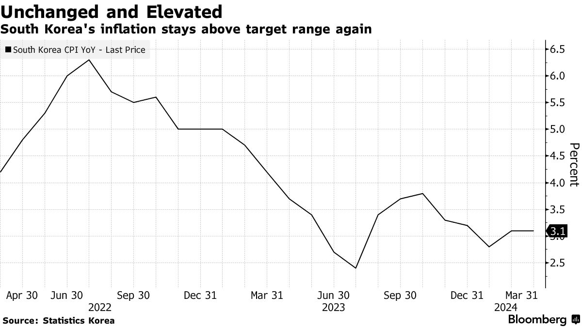 摄影师:SeongJoon Cho/Bloomberg韩国3月的通胀超出了预期,强化了央行认为现在考虑放松政策设置还为时过早的观点。