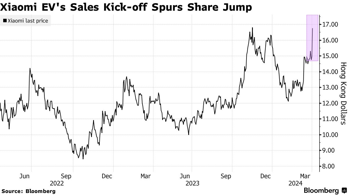 小米因首款电动汽车SU7订单强劲而腾飞,这是中国成功的早期迹象-彭博社