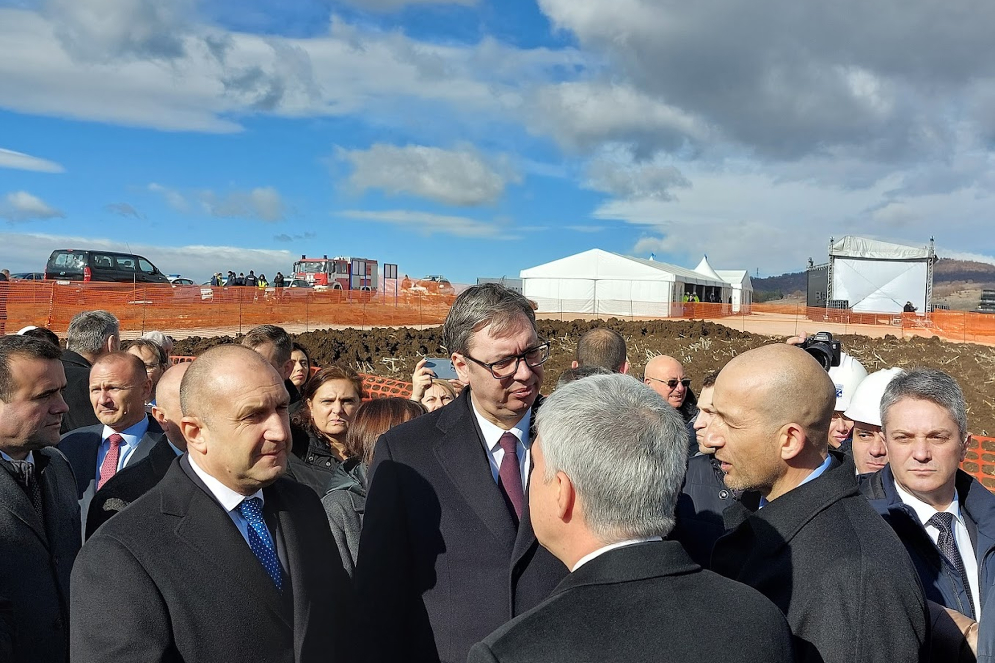 保加利亚总统鲁门·拉德夫(左)和塞尔维亚总统亚历山大·武契奇(中)于2023年2月1日在索非亚附近参观了一条互联天然气管道的建设。摄影师:斯拉夫·奥科夫/彭博社索非亚议会已经批准了禁止俄罗斯石油进口的禁令,该国正在寻找替代供应方案,以供应一座重要的核电站,该核电站使用俄罗斯燃料。