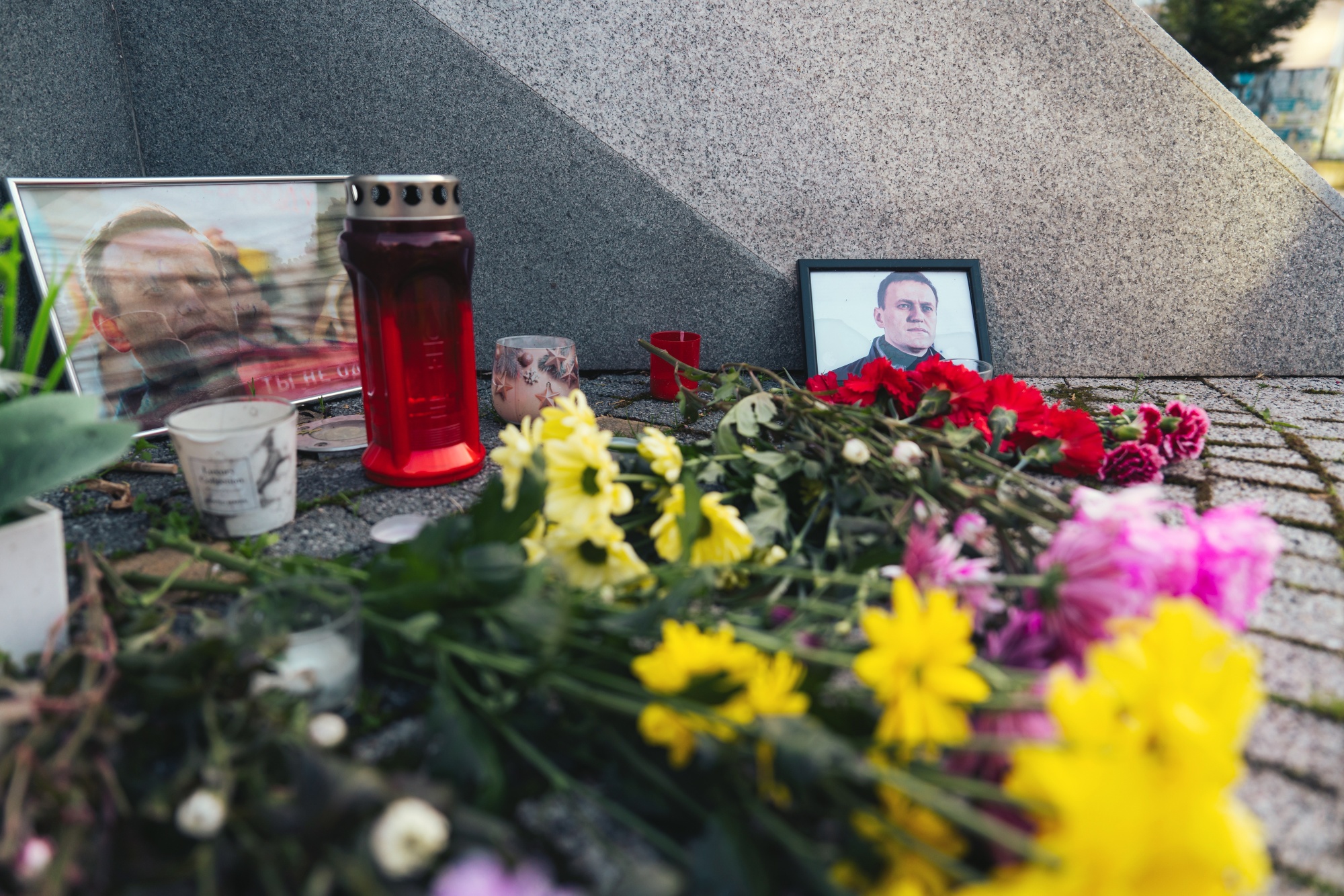 在布尔加斯受害者纪念碑前向阿列克谢·纳瓦尔尼致敬。摄影师:迈克拉·瓦切娃/彭博社