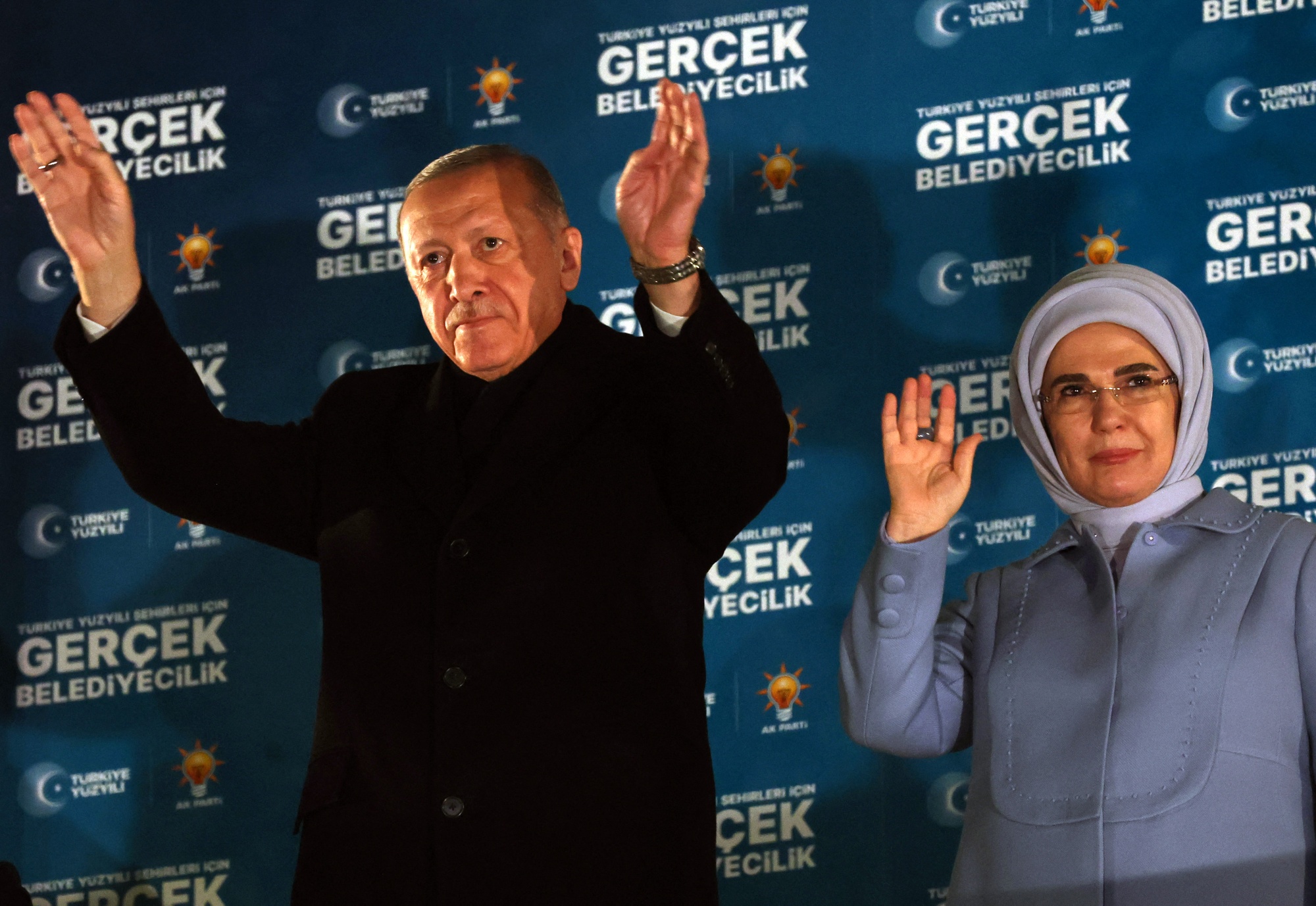 土耳其总统、正义与发展(AK)党领袖雷杰普·塔伊普·埃尔多安与他的妻子埃米娜·埃尔多安。