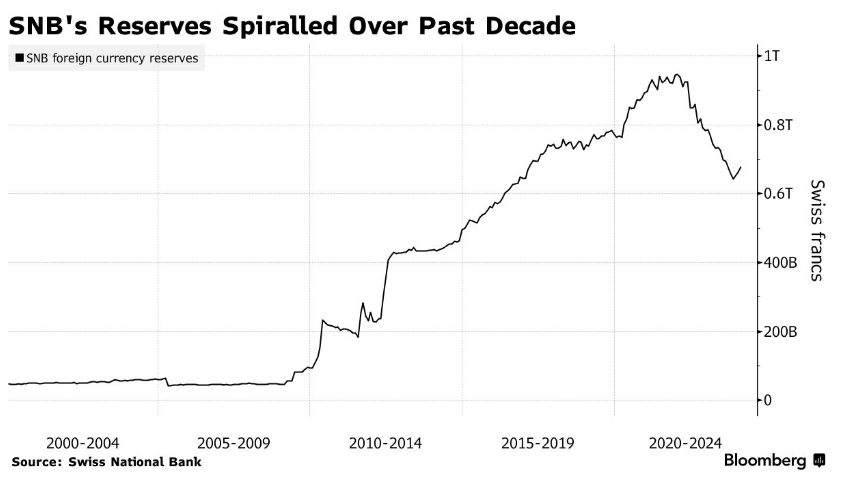 这对研究人员的研究表明,SNB需要花费大约270亿瑞士法郎来防止其货币升值1.1%。截至2月,中央银行的货币储备总额近6800亿瑞士法郎。