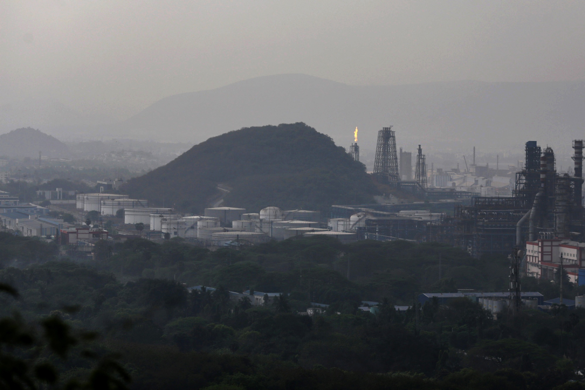 印度安得拉邦维萨卡帕特南港的炼油厂。