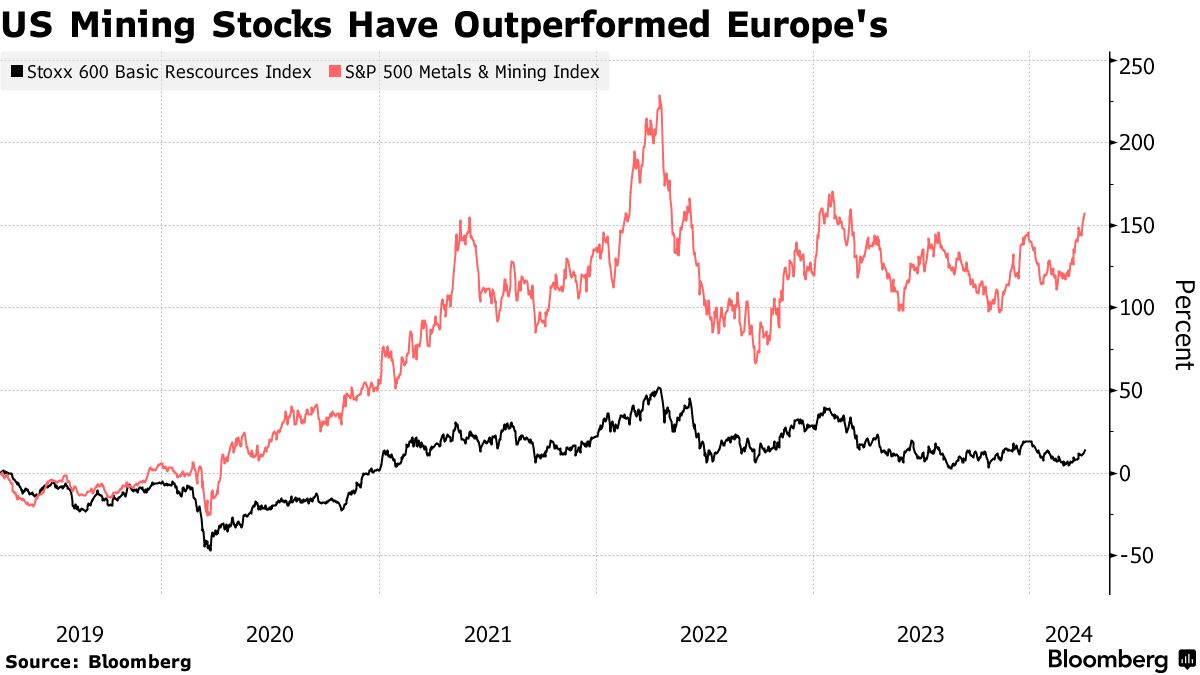 共同基金数据显示,美国市场更支持从事化石燃料业务的公司,而许多欧洲公司则将该行业排除在其投资组合之外,分析师写道。与此同时,他们表示,美国上市的铜矿股票交易价格远高于英国矿业公司。