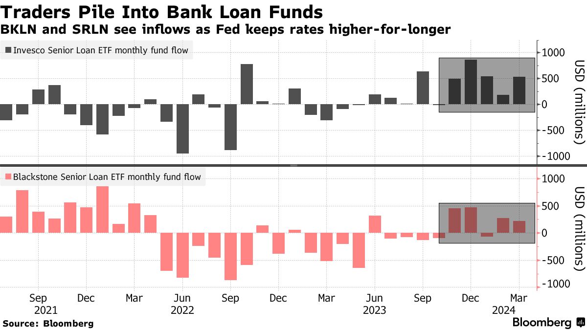 投资者正在向美国的杠杆贷款基金注入资金,这为今年信贷市场的一些最大涨幅提供了动力,他们高度确信利率将会下降缓慢,而垃圾评级的美国企业将能够承受高额借贷成本的压力。压力。