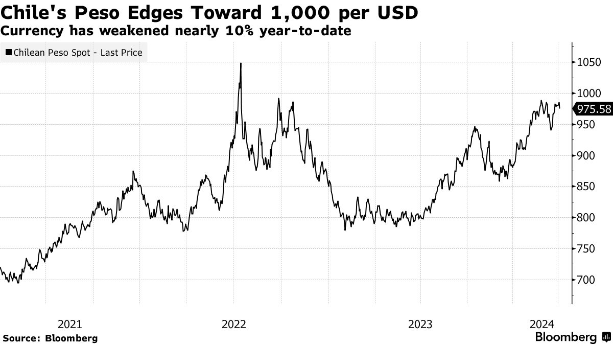 随着制造业和零售销售等部门复苏,决策者正在重新调整货币宽松的步伐,将通胀引导回到3%的目标。在2023年几乎没有增长的情况下,智利经济在年初出乎意料地强劲,因为限制性货币政策和政治不确定性拖累了需求。