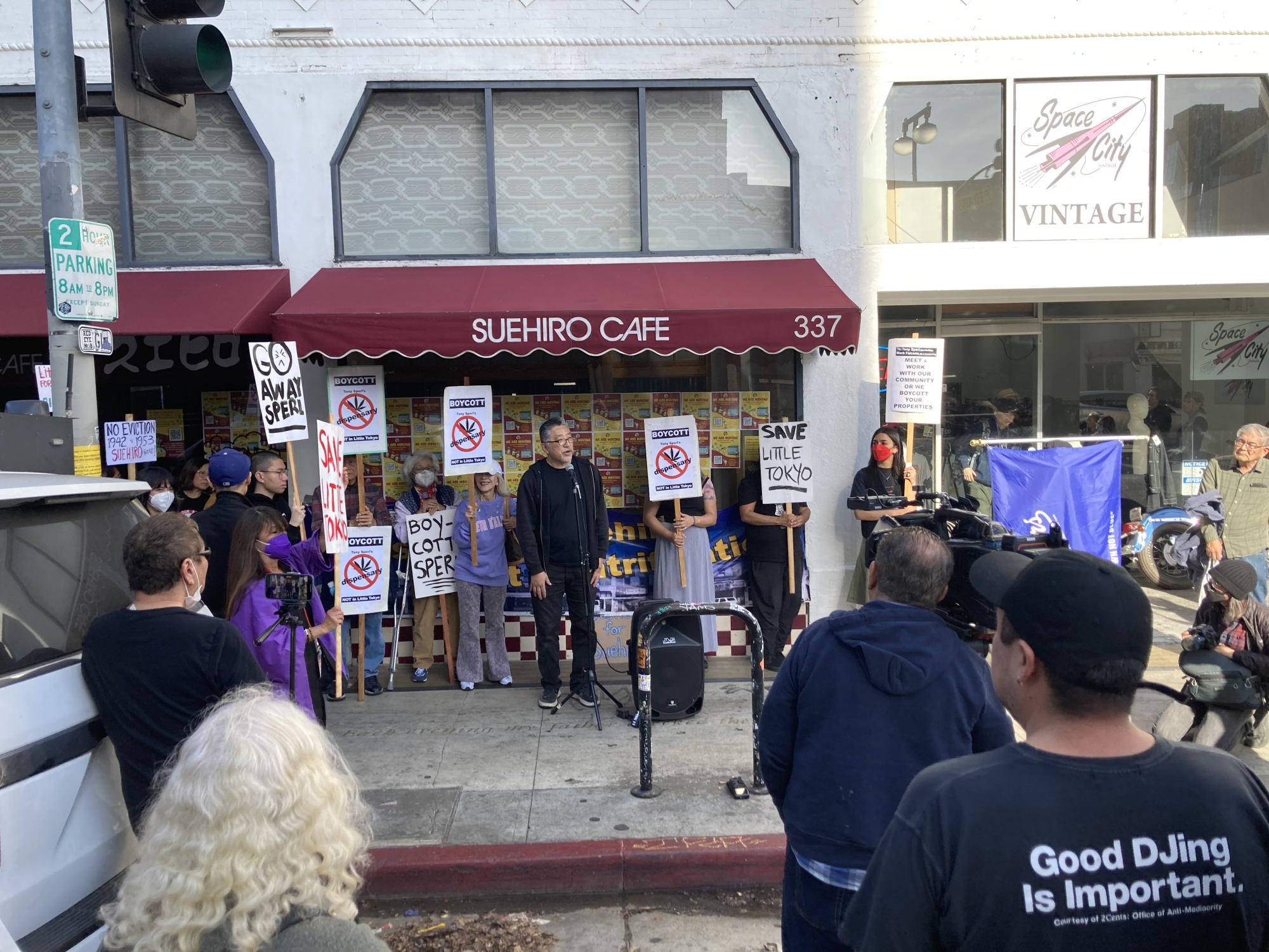 50岁的日本餐厅Suehiro,提供寿喜烧和乌冬等舒适食物,于一月份搬出了其经营地点,因为去年收到了一份驱逐通知,这让许多当地居民感到沮丧,他们已经抗议了数月。店主铃木健二表示,在将案件提交法庭之前,房东将Suehiro的租金从约6000美元一夜之间涨到了10000美元。