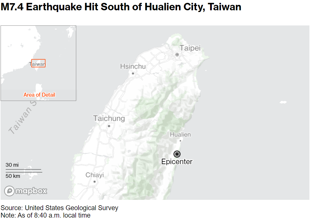 台湾遭受 25年来最强烈地震,引发了沿海地区和冲绳、中国等地的临时海啸警报。据美联社报道,至少有四人死亡,超过56人受伤。台积电和联电撤离了部分生产线。