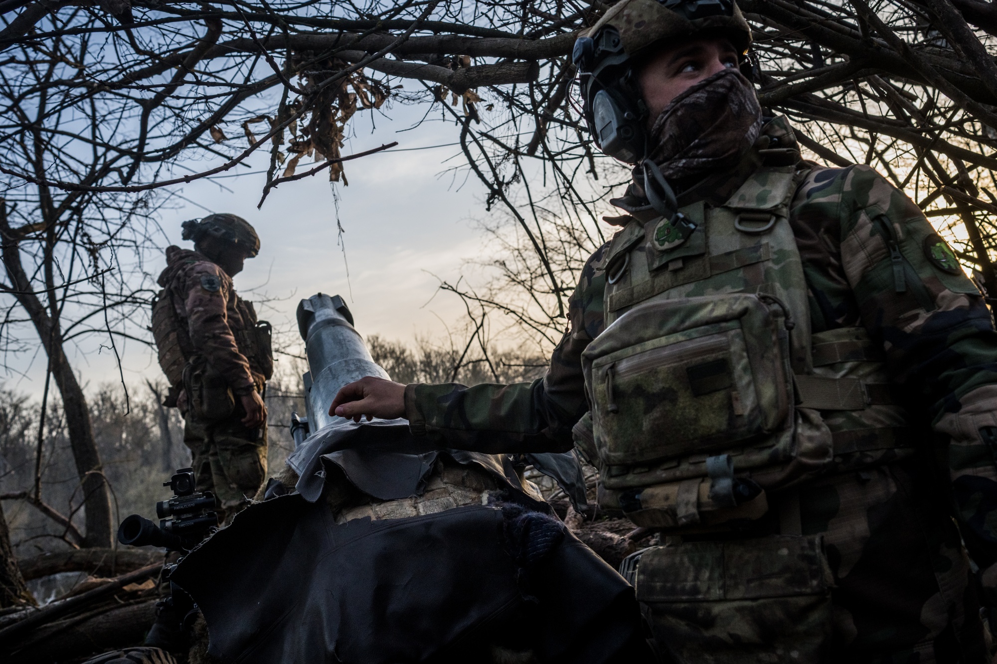 一名乌克兰士兵在4月1日准备炮火,瞄准顿涅茨克州,乌克兰。