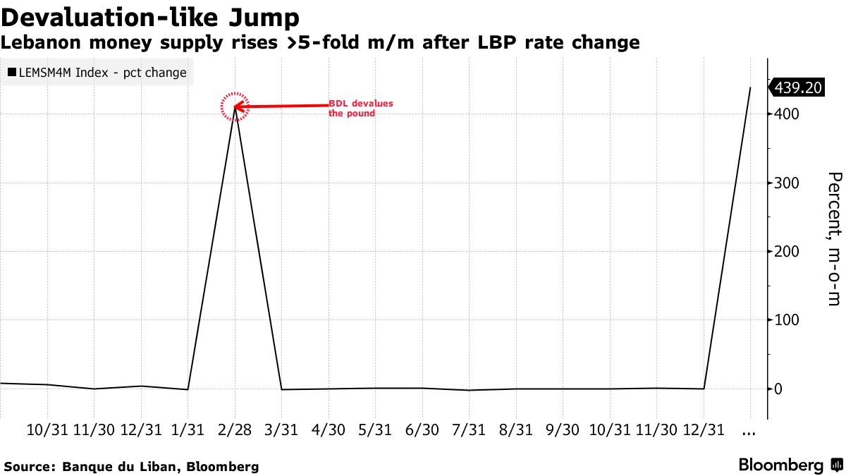 陷入危机的黎巴嫩,这个被投资者认为是世界上风险最高的国家,仅在一个月内看到其货币供应量增加了五倍多。