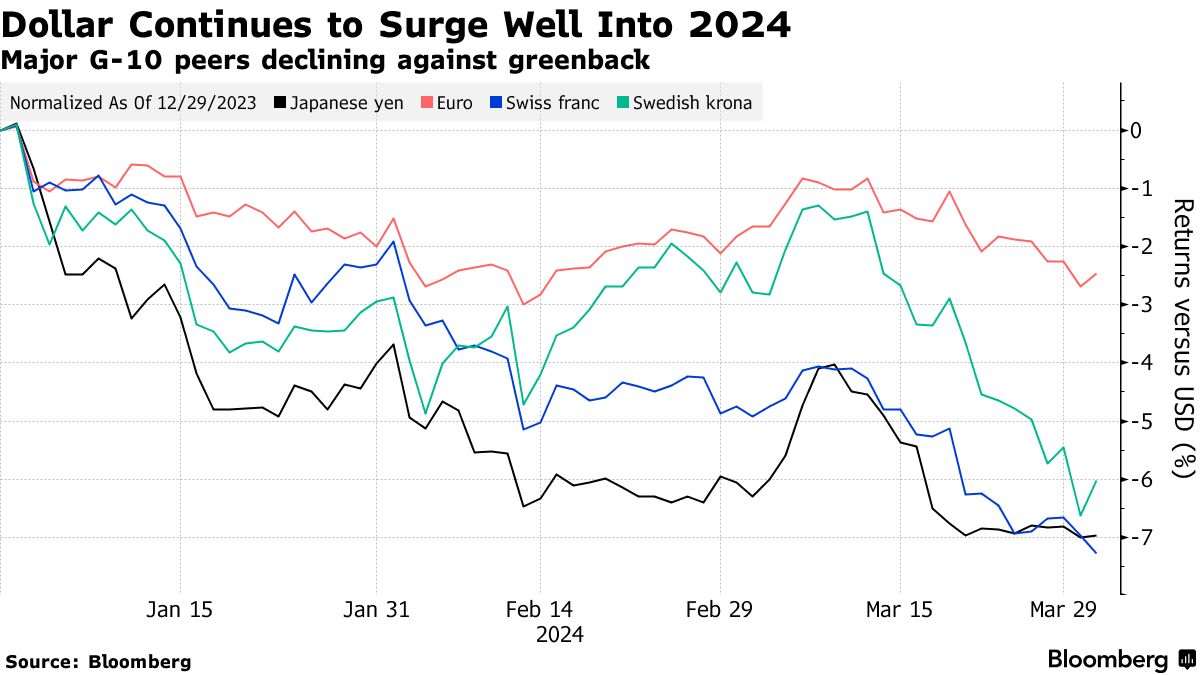 从 东京 到伊斯坦布尔,决策者们正在采取行动捍卫汇率,用言辞和行动来应对美国经济的弹性,推迟了对美国降息的预期,从而使美元保持强势。