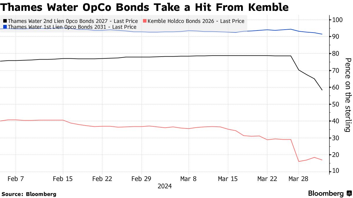 泰晤士河水公司的母公司肯布尔水务融资有限公司表示将无法偿还本月晚些时候到期的贷款,其债券长期以来一直以大幅折价交易。但由运营公司泰晤士河水务融资有限公司发行的债务仍然相对稳健。