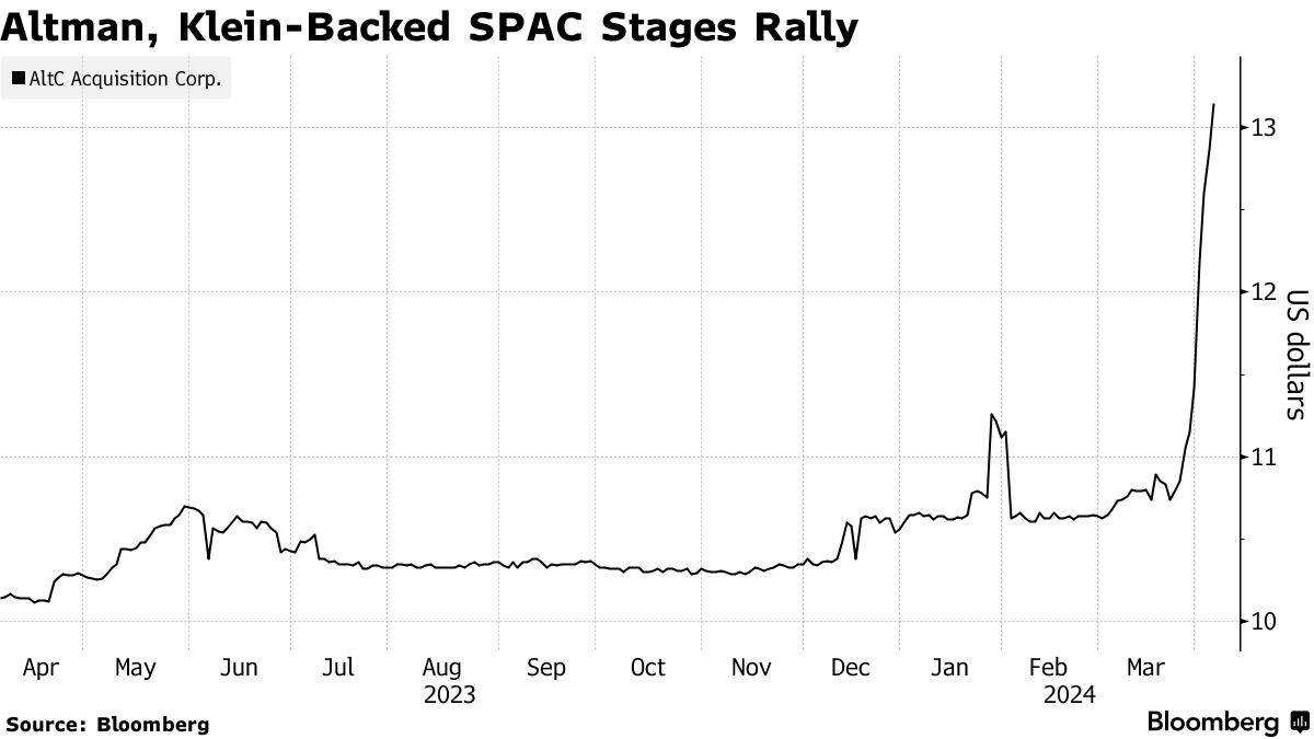 OpenAI由阿尔特曼支持的SPAC股价上涨22%,目标公司开始路演 - 彭博报道