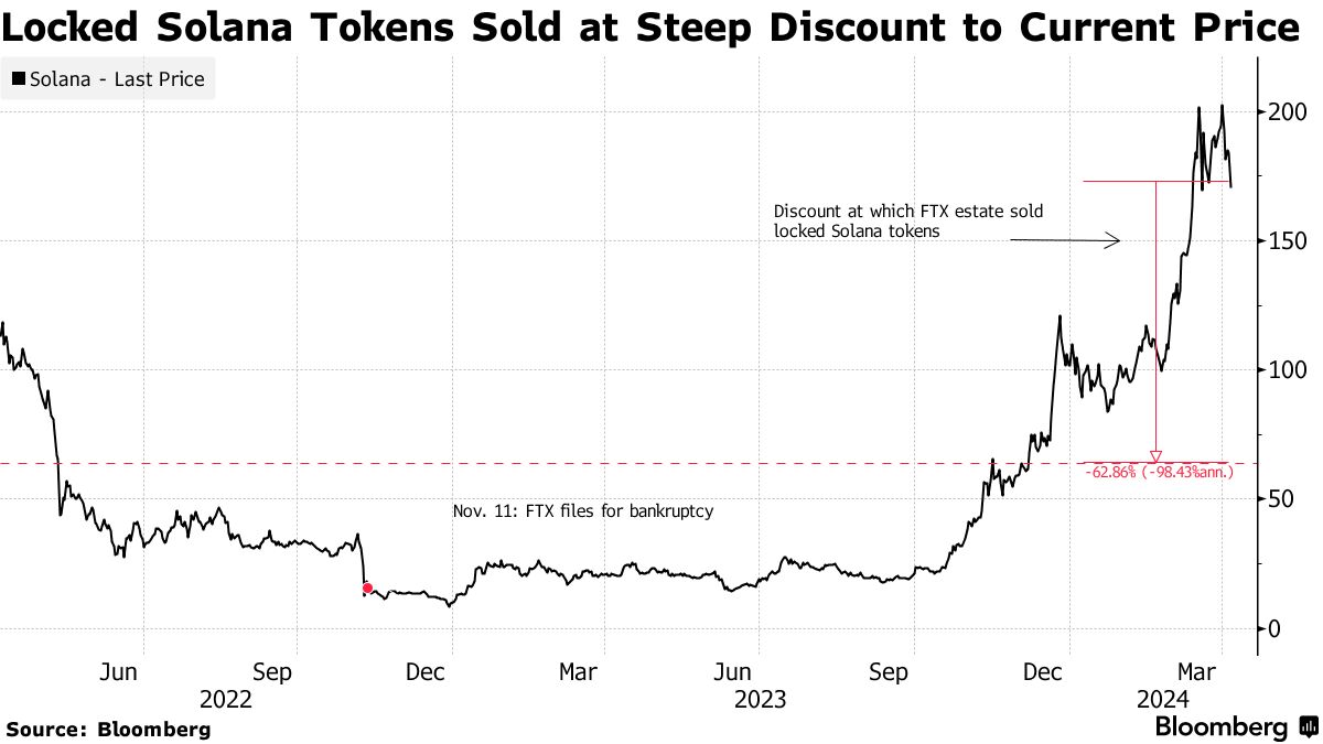 知情人士表示,FTX的破产清算出售了价值每枚64美元的2500万至3000万枚锁定的SOL代币,据称这将为破产清算筹集高达19亿美元。上周五,SOL的交易价格约为172美元,下跌了6.5%。
