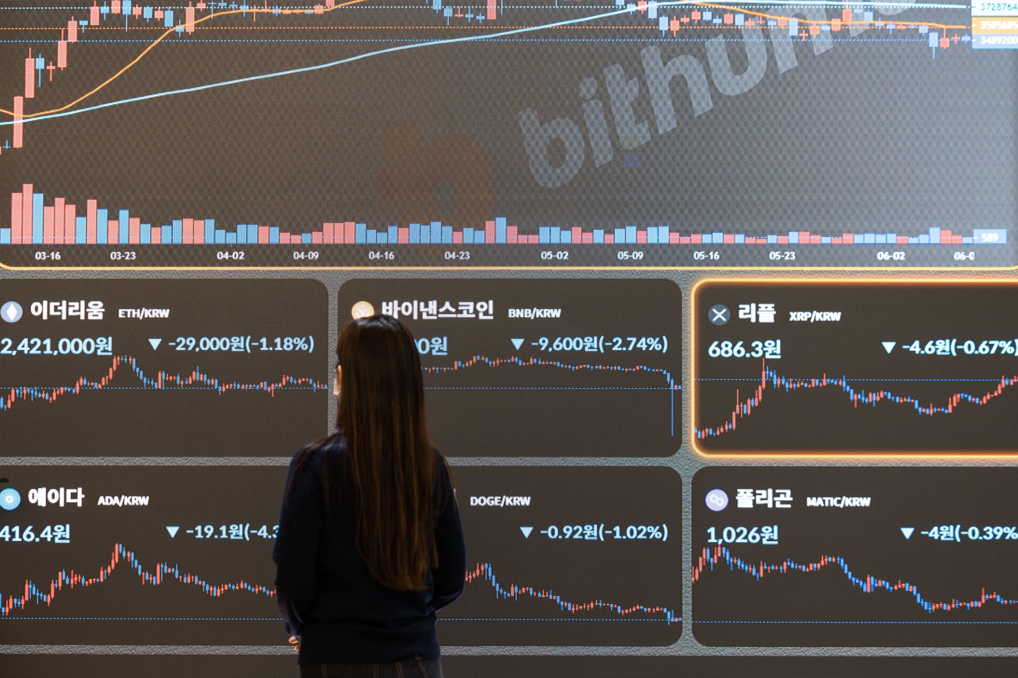 一块屏幕显示首尔Bithumb交易所的加密货币价格。摄影师:SeongJoon Cho/Bloomberg在韩国的议会选举中,竞选活动凸显了该国作为全球最大加密货币市场之一的地位,两大主要政党都在吹捧相关的诱因以赢得选票。尤权力党总统尹锡烈承诺延迟数字资产税,而反对党民主党承诺取消对包括美国比特币产品在内的交易所交易基金的限制,这些基金直接持有代币。