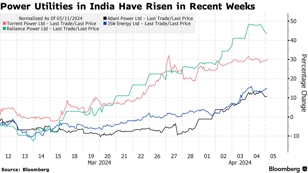 Adani Power Ltd.和Reliance Power Ltd.,热电厂的运营商,本周股价至少上涨了15%。