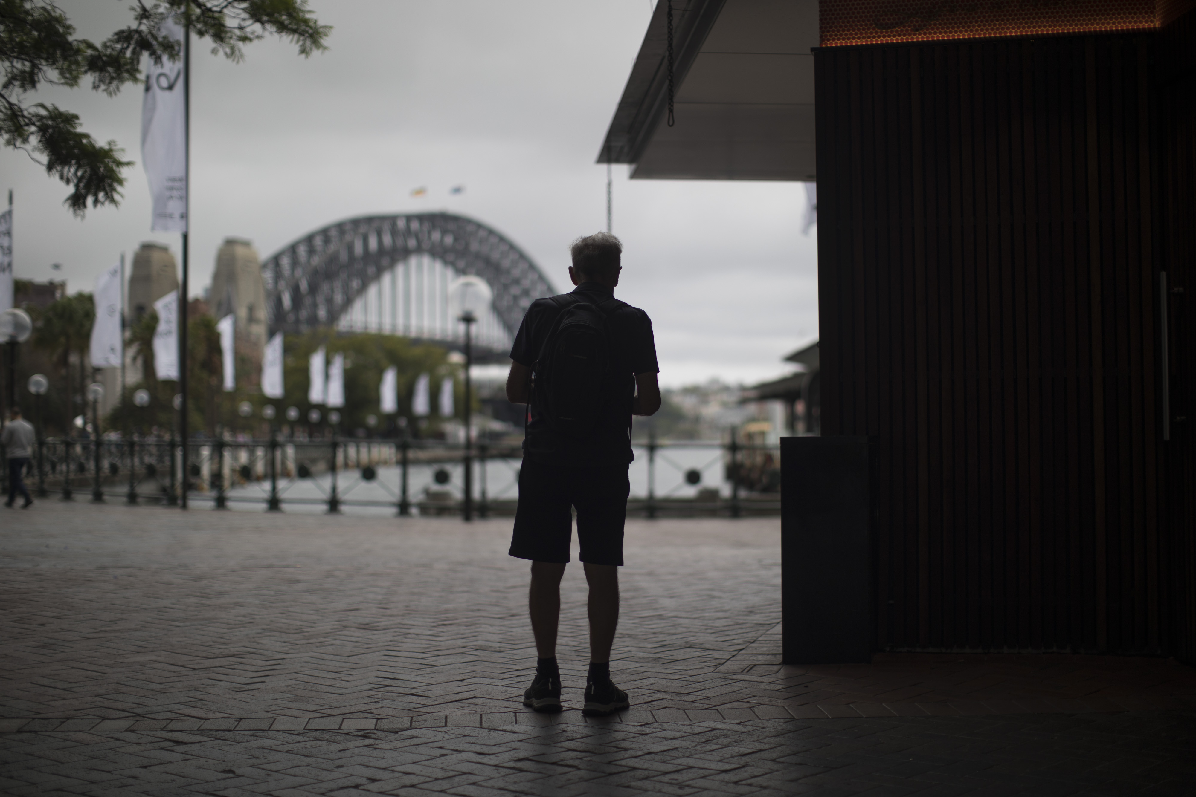 一个人站在悉尼港大桥附近,澳大利亚的悉尼。