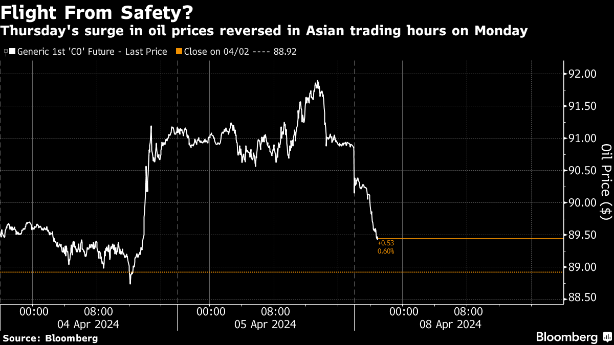 目前,亚洲交易市场的市场行为表明某种“逃离安全”的趋势正在发生。布伦特原油,最广泛交易的石油基准,现在已经跌破90美元以下,低于上周四的开盘价。如果市场当时对某事感到恐惧,那么现在市场表现得好像这些恐惧已经完全消失: