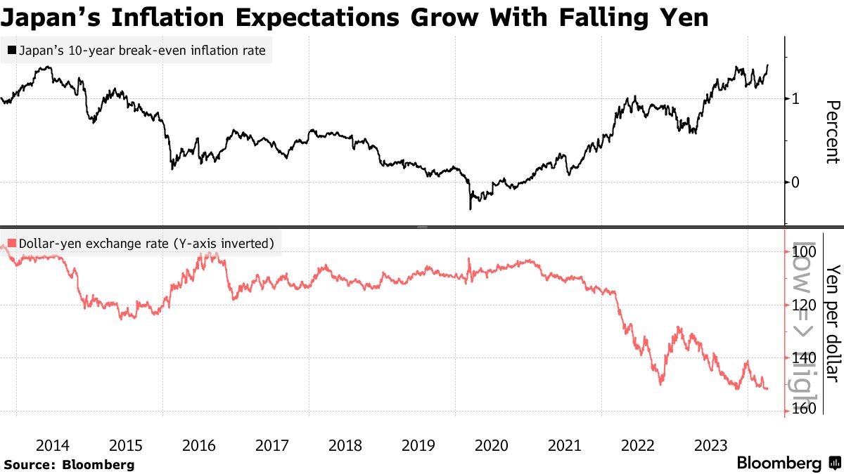 日本通胀预期与创纪录的高点相匹配,日元疲软 - 彭博社