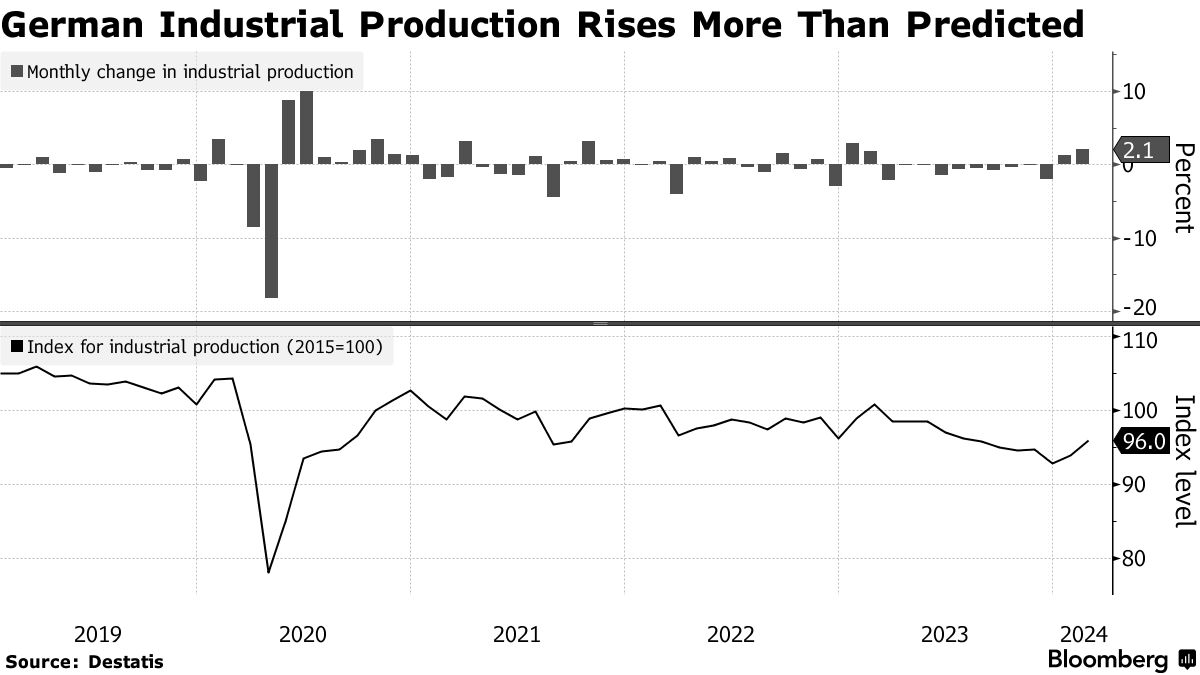 德国工业生产增长,显示下一个转机信号 - 彭博社