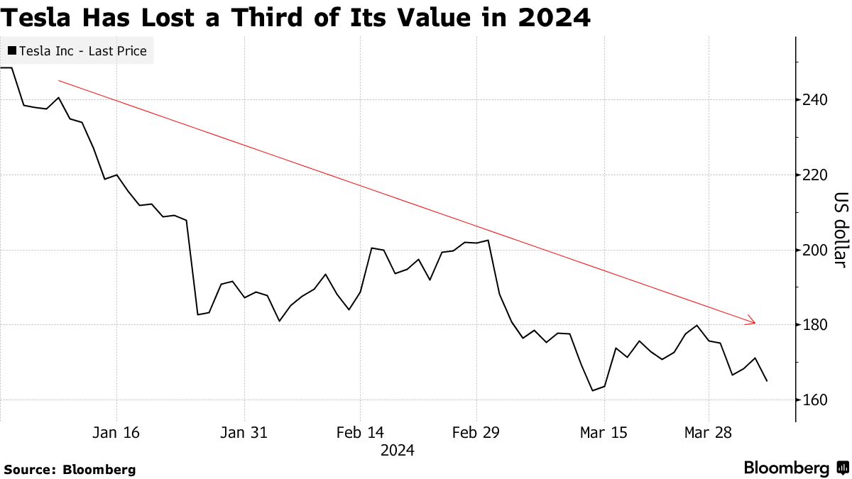 特斯拉今年市值下跌了约三分之一,而标普500指数上涨了9%,纳斯达克100指数上涨了7.6%。公司在四月份延续了下跌趋势,因为公司表示第一季度销售的汽车数量远远低于预期,引发了对其收入和盈利增长的担忧。未达到预期。