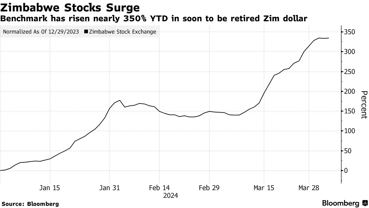 首都哈拉雷主要交易所的股票自年初以来上涨了三倍多。南非国家的股市飙升通常令人担忧,因为这表明通货膨胀加剧,投资者寻求对冲以保护他们的资金价值。消费者物价指数在3月份上升至55.3%,为七个月来的最高点。